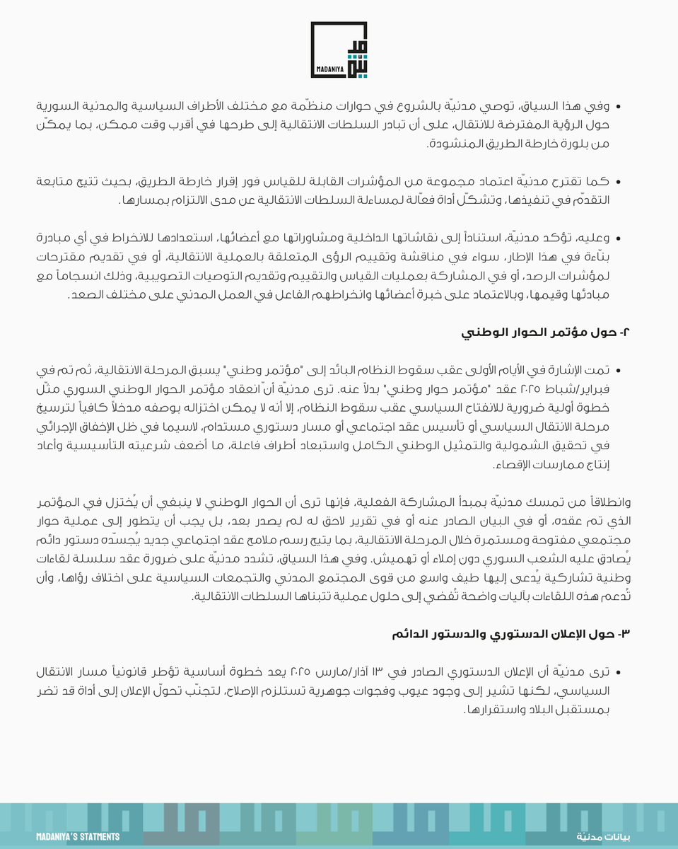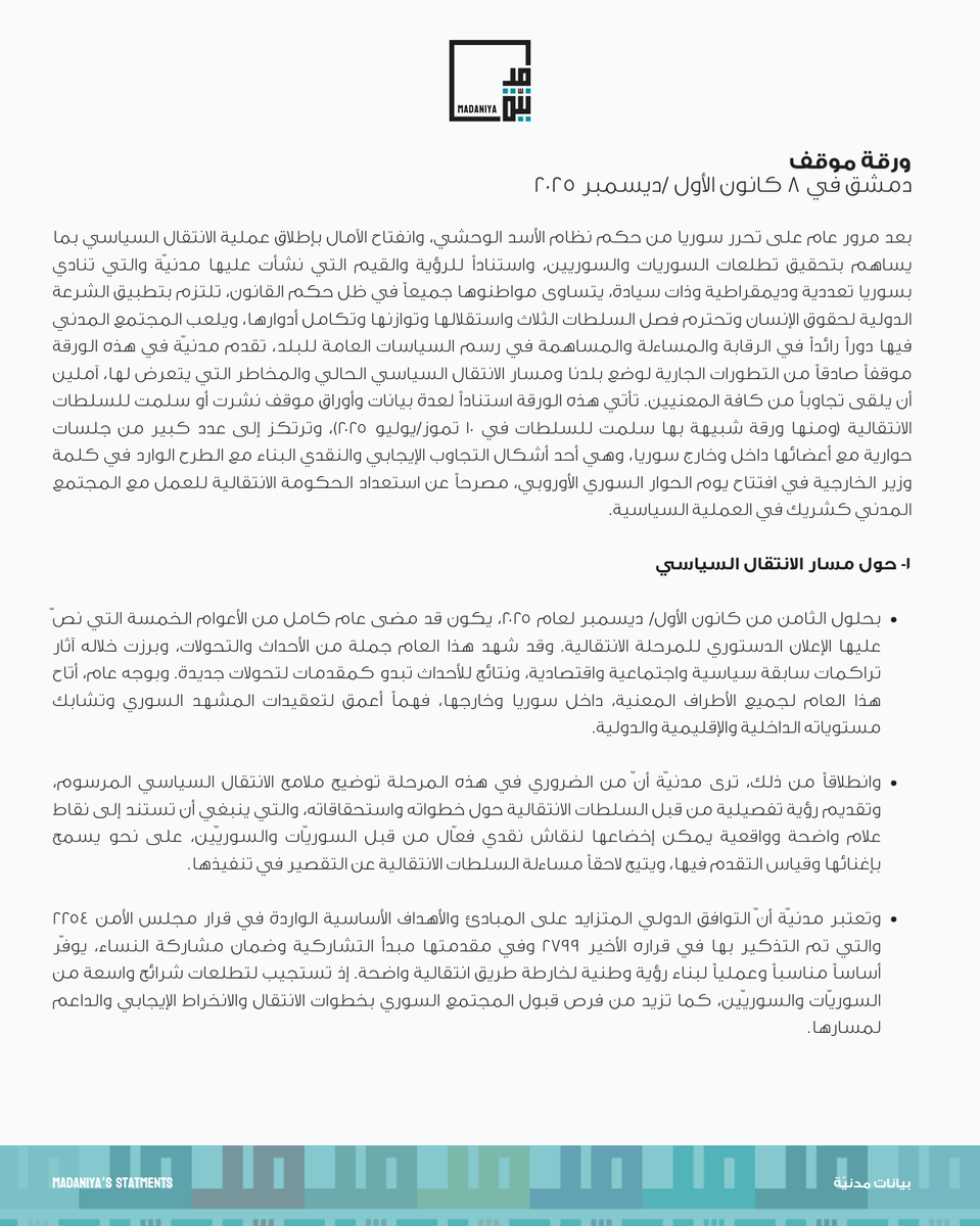 ورقة موقف حول الانتقال السياسي في سوريا